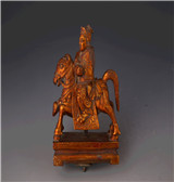 • 清金漆圆雕骑马人物木像